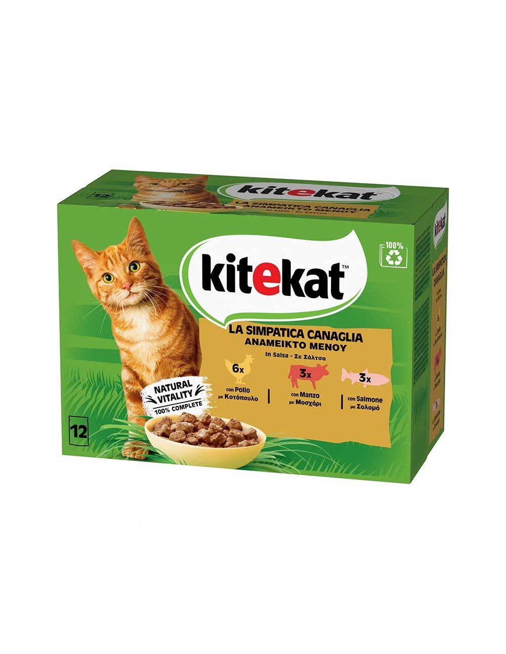 Kitekat - Σακουλάκια 12x85gr Κοτόπουλο Μοσχάρι Σολομός, 288 τεμάχια (παλέτα)