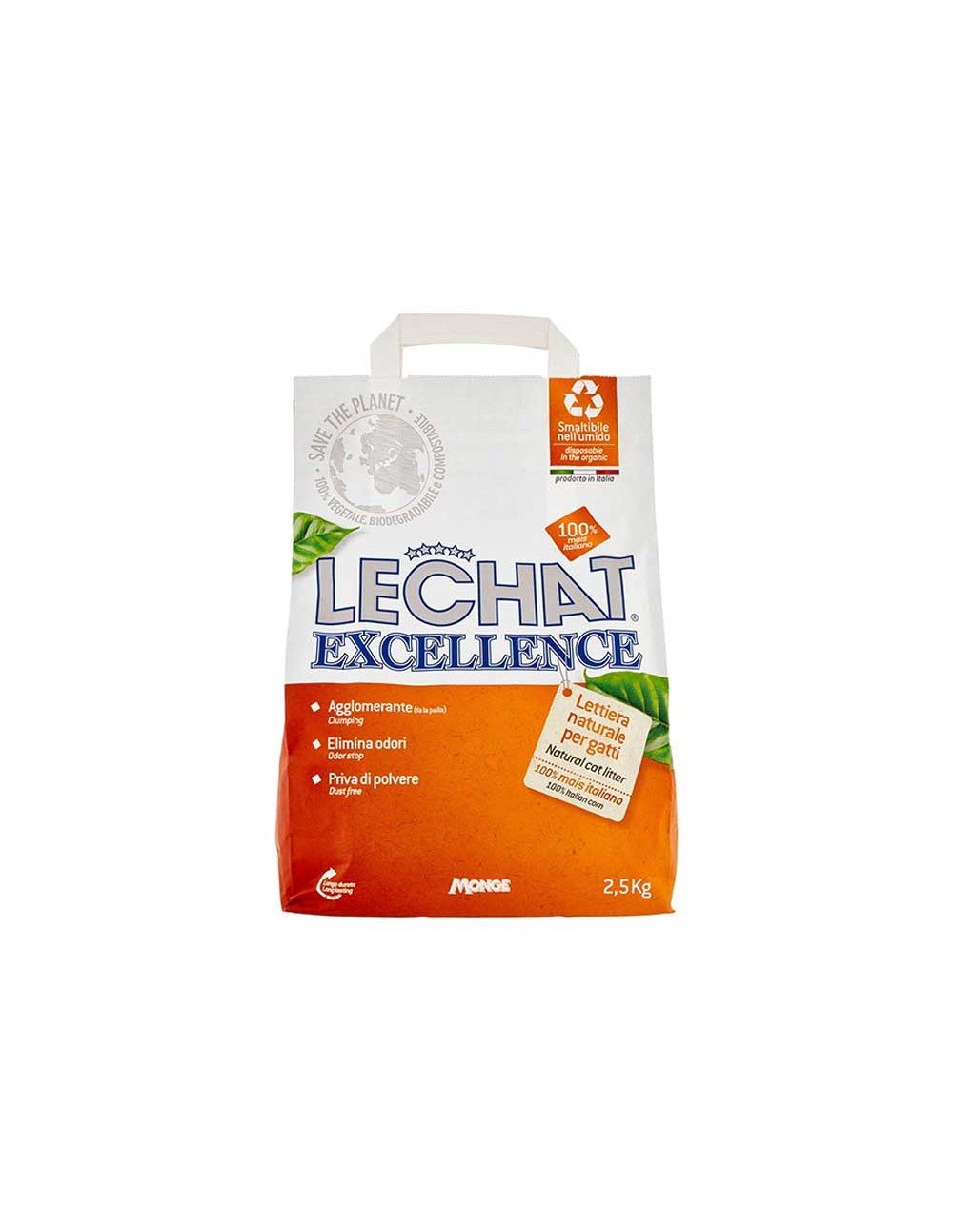 100% Βιοδιασπώμενο Βιοδιασπώμενο και οικολογικό. Απορρίπτεται στα οργανικά απόβλητα, οι μπάλες μπορούν να πεταχτούν στην οικιακή τουαλέτα, το πολύ 2 κάθε φορά. - Εγγυημένη υγιεινή Το ειδικό μέγεθος κόκκων της άμμου εμποδίζει την προσκόλληση στις άκρες των δακτύλων της γάτας, εμποδίζοντάς την να εξαπλωθεί έξω από την άμμο. - Συσσωμάτωση Σε λιγότερο από 1 λεπτό η μπάλα είναι ήδη συμπαγής, μειώνοντας τα απόβλητα στο ελάχιστο. - Χωρίς σκόνη Δεν απελευθερώνει σκόνη που μπορεί να βλάψει την αναπνευστική οδό, αποφεύγοντας επίσης τις ενοχλητικές αλλεργικές αντιδράσεις στους ανθρώπους. Κατάλληλο για κουτάβια. - Εξαλείφει τις οσμές Δεν καλύπτει τις οσμές, αλλά τις εξαλείφει. Το δραστικό συστατικό διασπά τα μόρια που ευθύνονται για την κακή οσμή. - 100% Φυσική άμμος που αποτελείται από 100% ιταλικό καλαμπόκι σε συνδυασμό με το δραστικό συστατικό φυτικής και ορυκτής προέλευσης. Η φυσική άμμος Lechat Excellence έχει σχεδιαστεί για να καλύπτει τις ανάγκες της γάτας σας. Φτιαγμένη από 100% ιταλικό καλαμπόκι, εξαλείφει τις δυσάρεστες οσμές των ούρων της γάτας, χάρη στο ενεργό φυτικό και ορυκτό συστατικό που διασπά τα μόρια που ευθύνονται για την κακή οσμή. Χωρίς σκόνη, η οικολογική άμμος υγιεινής Lechat Excellence σέβεται την αναπνευστική οδό του ζώου, καθιστώντας την κατάλληλη και για κουτάβια, αποφεύγοντας τις ενοχλητικές αλλεργικές αντιδράσεις. Δεν κολλάει στις πατούσες, εξασφαλίζοντας την άνεση της γάτας και εμποδίζοντας την εξάπλωσή της στο σπίτι. Έχει υψηλή απορροφητική και συσσωματωτική δύναμη: σε επαφή με υγρά, στην πραγματικότητα, πήζει, δημιουργώντας μια εύκολα αφαιρούμενη μπάλα. Εξαιρετικά φιλική προς το περιβάλλον και με χαμηλό περιβαλλοντικό αντίκτυπο, είναι 100% βιοδιασπώμενη και μπορεί να απορριφθεί απευθείας στον σάκο απορριμμάτων ή, με μέτρο, στην τουαλέτα. Η οικολογική άμμος υγιεινής για τη γάτα είναι πρακτική και εύκολη στην απόρριψη, σεβαστή και με χαμηλό περιβαλλοντικό αντίκτυπο.
