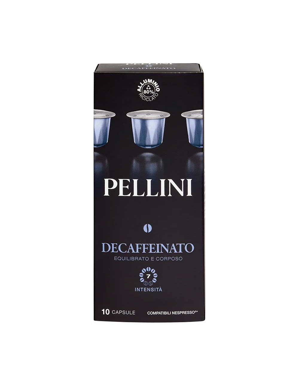 Μείγμα καφέ χωρίς καφεΐνη, καβουρδισμένου και αλεσμένου. Η περιεκτικότητα σε καφεΐνη δεν υπερβαίνει το 0,10%. Συσκευασμένο σε προστατευτική ατμόσφαιρα. Κάψουλες αλουμινίου και συμβατό με μηχανές Nespresso* * Η μάρκα δεν ανήκει στην Pellini Caffè S.p.A. ή σε εταιρείες που συνδέονται με αυτήν.